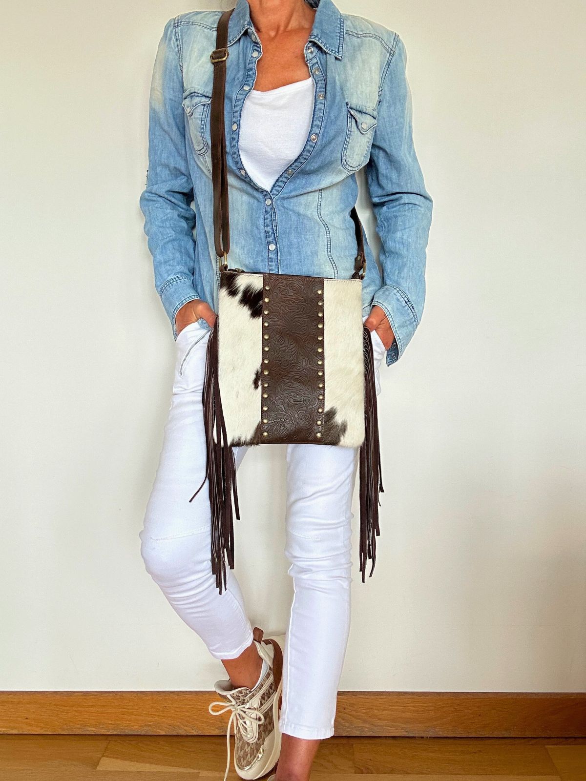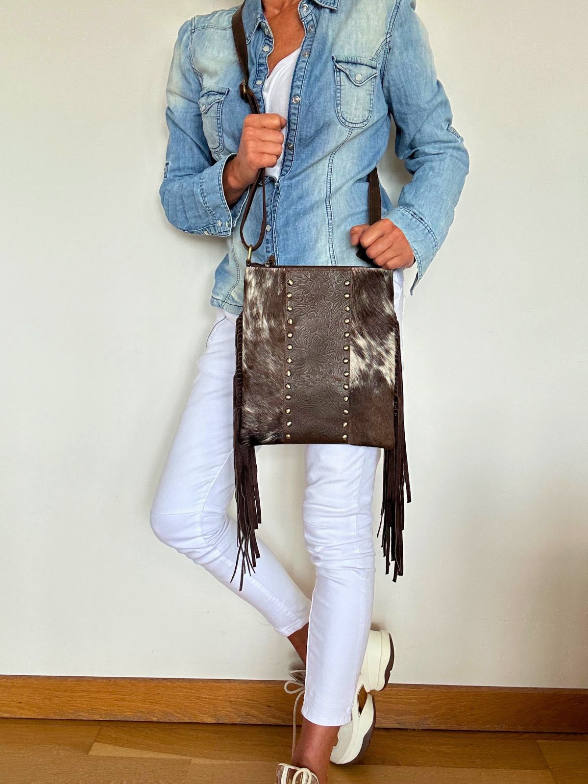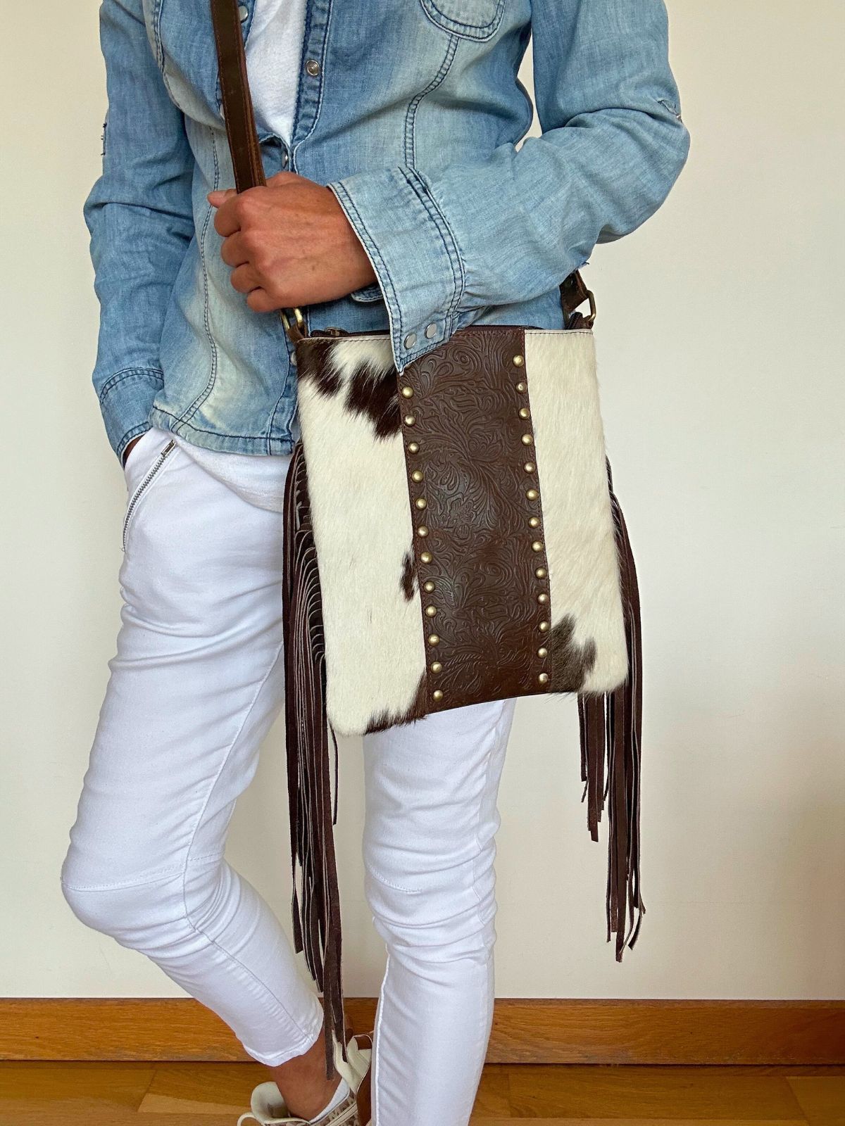 Único, cada tramo de cuero pelo es diferente en cada bolso aunque el diseño sea el mismo.