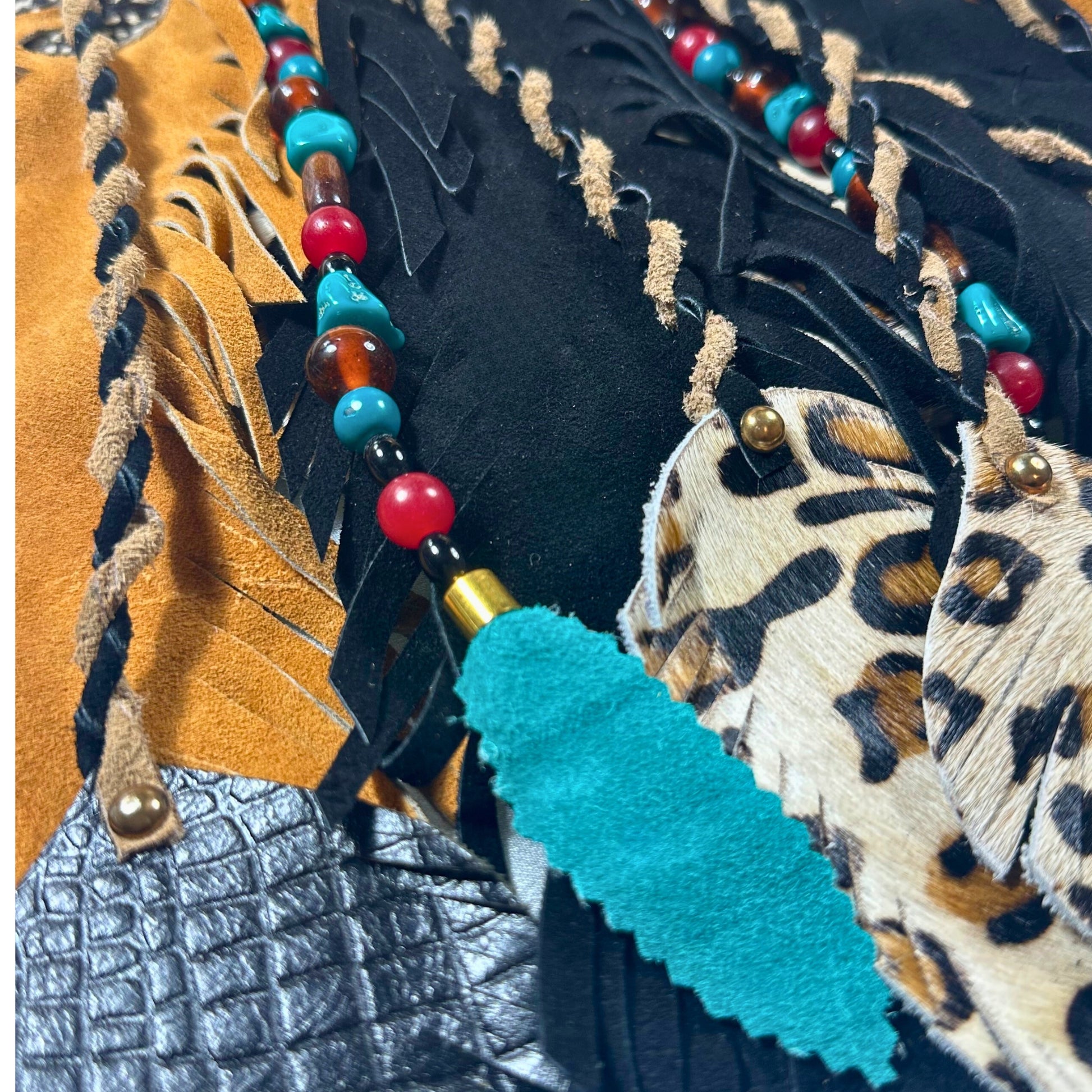 ¡Este bolso lo tiene TODO! 😍 Confeccionado en una combinación espectacular de cuero grabado y ante con estampado animal print, incluye una parte en cuero negro grabado que le da un toque elegante y versátil 🖤✨.