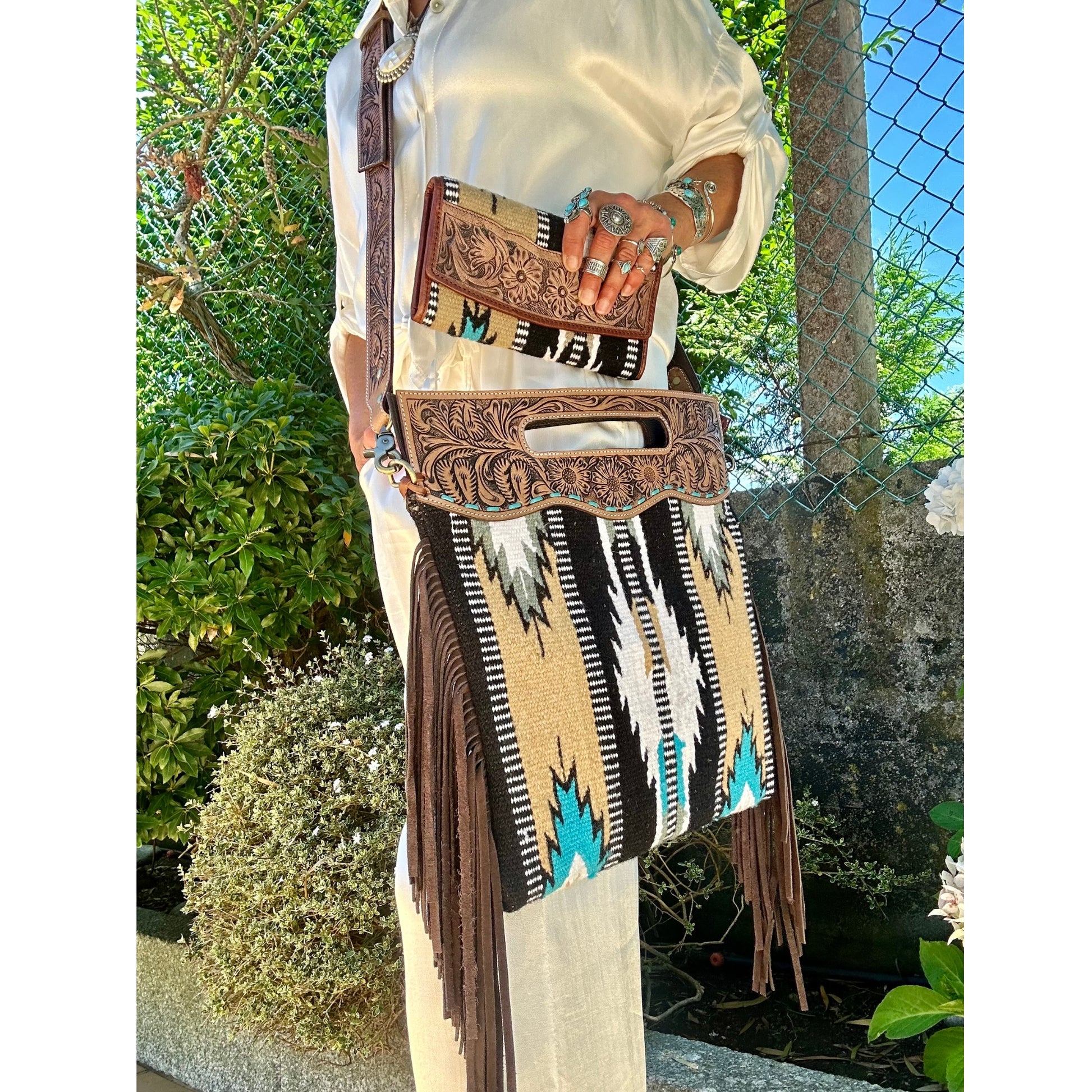 Un dúo que lo tiene todo ✨🖤. Este bolso hobo con su cartera a juego es el combo perfecto para las que buscan estilo, comodidad y originalidad. Hechos a mano con mimo y dedicación, combinan tela de algodón estampada con ante y cuero grabado, logrando una mezcla de texturas que enamora 💫.